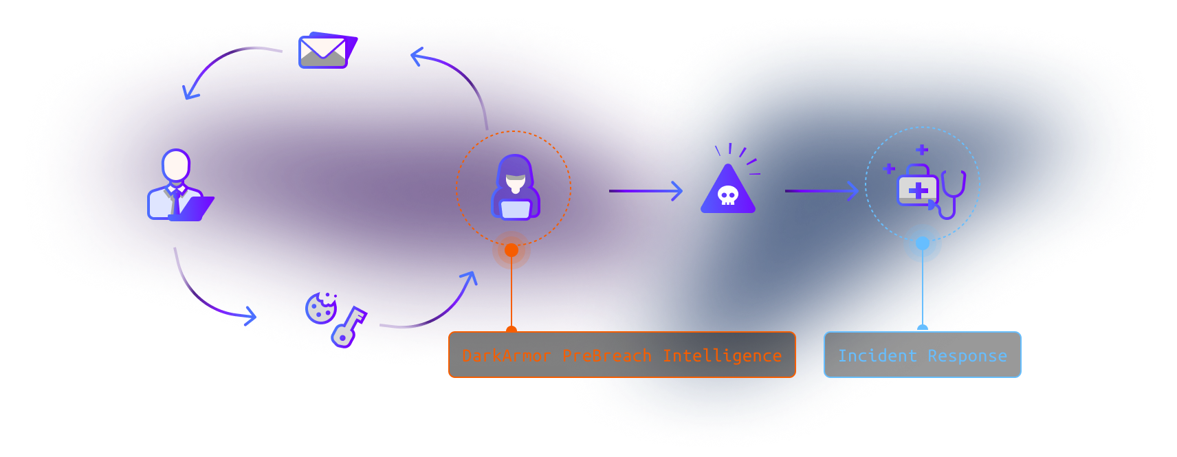 Our platform's advanced PreBreach forensics and early warning system detects compromised credentials before threat actors can take advantage of them, sometimes months before a ransomware attack